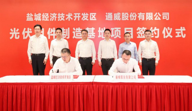 9月29日,通威高效光伏組件制造基地項(xiàng)目簽約活動(dòng)在鹽舉行,這是我市服務(wù)國家“雙碳”戰(zhàn)略、建設(shè)綠色低碳發(fā)展示范區(qū)取得的又一重要成果。市委書記徐纓會(huì)見通威股份有限公司董事長、CEO謝毅一行。市委副書記、市長周斌參加簽約活動(dòng)并講話。