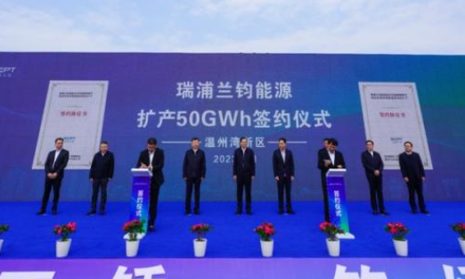 龍灣區(qū)委書記周一富主持儀式,溫州高新區(qū)黨工委副書記、溫州高新區(qū)(經開區(qū))管委會常務副主任謝忠誠和瑞浦蘭鈞能源股份有限公司董事長曹輝代表溫州高新區(qū)(經開區(qū))和青山實業(yè)瑞浦蘭鈞對瑞浦蘭鈞擴產50GWh項目進行現(xiàn)場簽約。