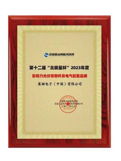 萊姆電子喜獲第十二屆“北極星杯”2023年度影響力光伏零部件及電氣配套品牌獎(jiǎng)