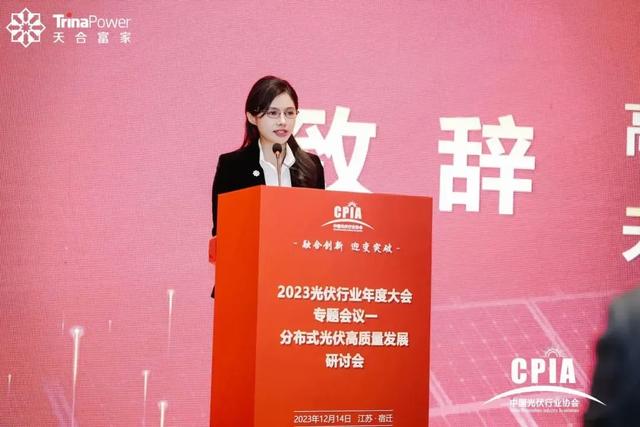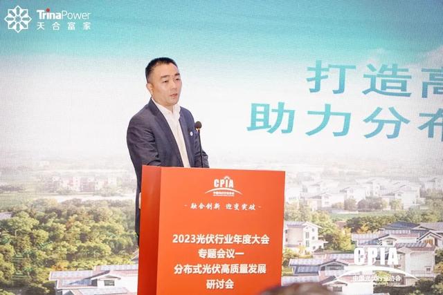 2023年12月14日,為深入探討新形勢下光伏市場發(fā)展情況、發(fā)展方向與路徑,促進(jìn)行業(yè)交流與溝通,由中國光伏行業(yè)協(xié)會與宿遷市人民政府聯(lián)合主辦的“2023光伏行業(yè)年度大會”在宿遷盛大開幕,天合富家能源股份有限公司董事長高海純應(yīng)邀出席并為分布式光伏高質(zhì)量發(fā)展研討會致辭。