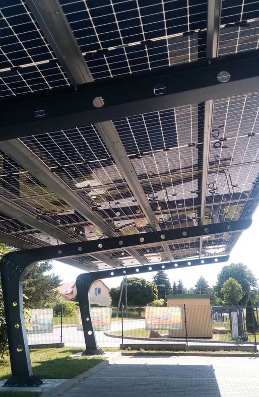 作為歐洲光伏需求旺盛的市場,波蘭早就將“光伏+車棚”滲透于應用當中,出現(xiàn)了一個個“綠色”車棚的身影。中來JW-HD144N高功率、高性價比的雙面組件替代了傳統(tǒng)車棚的膜結構鋼頂,不僅可以遮風擋雨、節(jié)能環(huán)保而且實用性強,深藍色的光伏電板在陽光下熠熠生輝,為當?shù)卦鎏砹艘坏懒聋惖娘L景。