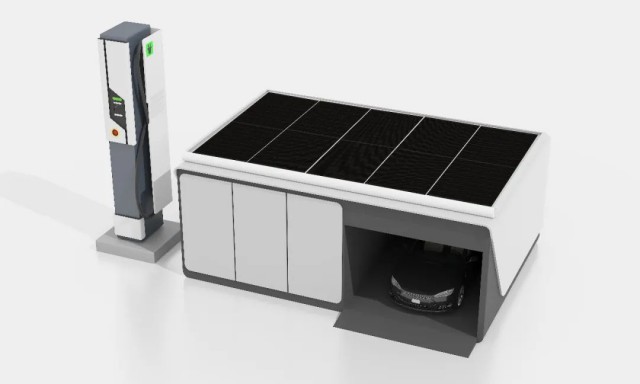 中來匈牙利墻體結構的光伏車棚項目,只需要30塊組件,連接充電樁,利用棚頂?shù)墓夥M件發(fā)電,可以解決至少6輛新能源車的充電問題。