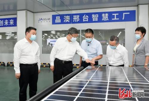 倪岳峰書(shū)記參觀了公司組件生產(chǎn)車(chē)間,聽(tīng)取晶澳發(fā)展歷程和基地生產(chǎn)研發(fā)現(xiàn)狀,并深入了解邢臺(tái)基地智慧工廠的建設(shè)思路、發(fā)展規(guī)劃等情況。