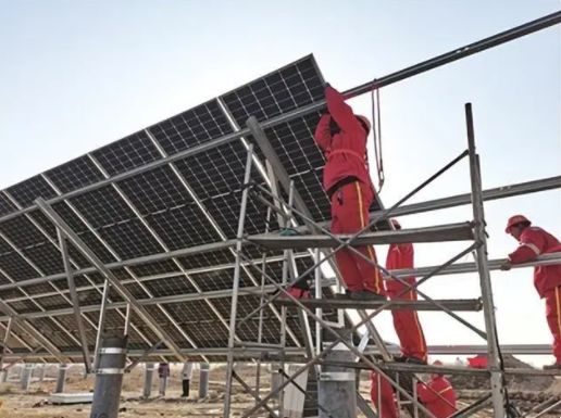 立春節(jié)氣剛剛過(guò)去,在大港油田48兆瓦分布式光伏發(fā)電項(xiàng)目的建設(shè)現(xiàn)場(chǎng),各類機(jī)器轟鳴,300余名建設(shè)者正忙著安裝光伏板,大家搶抓工期,加緊推進(jìn)項(xiàng)目進(jìn)度。原本一片荒蕪的土地,現(xiàn)如今被一根根樁基覆蓋。