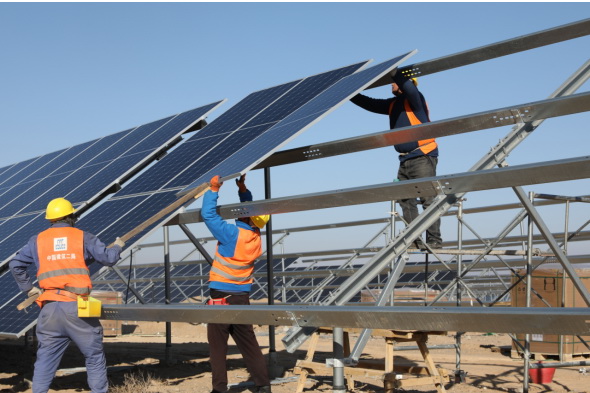 一望無垠的荒漠戈壁里,光伏藍(lán)海在陽光下熠熠生輝,與光熱儲(chǔ)能板塊、風(fēng)電板塊遙相呼應(yīng),“建”證著建設(shè)者在“沙戈荒”上追“光”逐“日”。中建二局將始終聚焦國家發(fā)展戰(zhàn)略,以實(shí)際行動(dòng)為綠色中國貢獻(xiàn)更多力量。(麻倩、劉慶安)