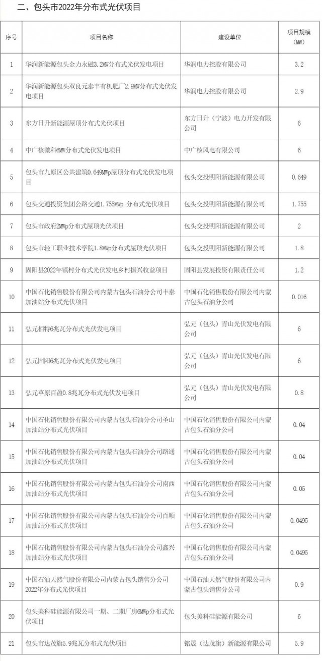 1月10日,內(nèi)蒙古包頭2022年分散式風(fēng)電、分布式光伏發(fā)電項(xiàng)目競(jìng)爭(zhēng)性配置優(yōu)選結(jié)果的公示。