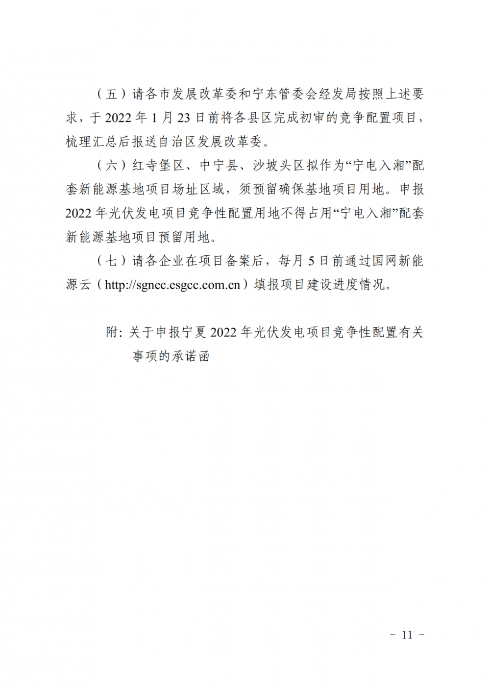 紅寺堡區(qū)、中寧縣、沙坡頭區(qū)擬作為“寧電入湘”配套新能源基地項目場址區(qū)域,須預留確?;仨椖坑玫?。申報2022年光伏發(fā)電項目競爭性配置用地不得占用“寧電入湘”配套新能源基地項目預留用地。