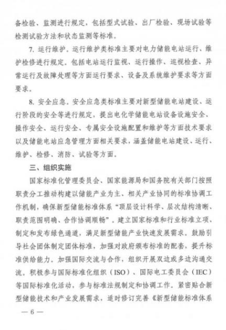 到2025年,在電化學(xué)儲(chǔ)能、壓縮空氣儲(chǔ)能、可逆燃料電池儲(chǔ)能、超級(jí)電容儲(chǔ)能、飛輪儲(chǔ)能、超導(dǎo)儲(chǔ)能等領(lǐng)域形成較為完善的系列標(biāo)準(zhǔn);加強(qiáng)與國(guó)內(nèi)外標(biāo)準(zhǔn)化組織技術(shù)交流,著力打破產(chǎn)業(yè)發(fā)展瓶頸,規(guī)范引導(dǎo)產(chǎn)業(yè)高質(zhì)量發(fā)展,保障儲(chǔ)能電站安全;加大國(guó)際標(biāo)準(zhǔn)化力度,深度參與國(guó)際電工委員會(huì)(IEC)國(guó)際標(biāo)準(zhǔn)化工作,支撐標(biāo)準(zhǔn)走出去。逐步構(gòu)建適應(yīng)技術(shù)創(chuàng)新趨勢(shì)、滿(mǎn)足產(chǎn)業(yè)發(fā)展需求、對(duì)標(biāo)國(guó)際先進(jìn)水平的新型儲(chǔ)能標(biāo)準(zhǔn)體系。