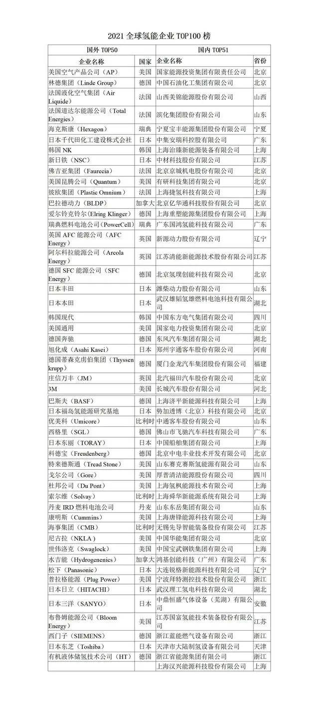 12月9日,首屆氫能?chē)?guó)際(中國(guó)·南海)主題峰會(huì)暨2021全球氫能企業(yè)TOP 100榜發(fā)布會(huì)在佛山市南海區(qū)舉辦。該榜單由地方政府、企業(yè)、科研機(jī)構(gòu)等多方聯(lián)合發(fā)布,集納全球101家氫能企業(yè),將助力匯聚“政產(chǎn)學(xué)研用資”力量,推動(dòng)氫能產(chǎn)業(yè)上下游跨區(qū)域聯(lián)動(dòng)。國(guó)家能源集團(tuán)、中國(guó)石化、美錦能源等51家企業(yè)上榜!