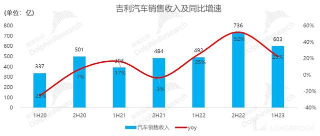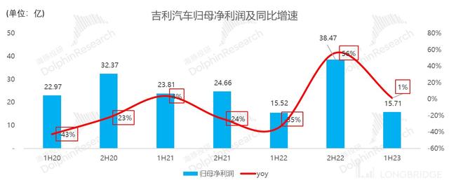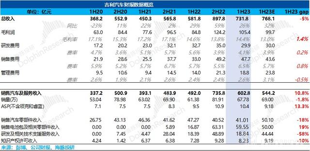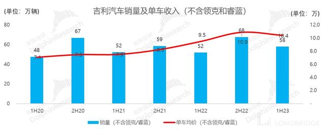 根據(jù)海豚君計(jì)算,公司 2023 年上半年實(shí)現(xiàn)單車收入(不含領(lǐng)克和睿藍(lán))10.4 萬元,同比增 10%,超出市場(chǎng)預(yù)期 9.2 萬元。