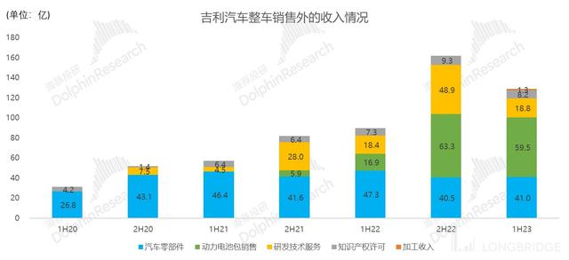 2023 年上半年,公司整車銷售業(yè)務(wù)實(shí)現(xiàn)營收 603 億元,同比增 23%,超出市場(chǎng)預(yù)期 10.8%。在銷量(不含領(lǐng)克、睿藍(lán))同比增長 12% 的但銷量數(shù)據(jù)市場(chǎng)已知的情況下,單車 ASP 超出市場(chǎng)預(yù)期 13.3%,帶動(dòng)整車銷售業(yè)務(wù)大幅度超預(yù)期。