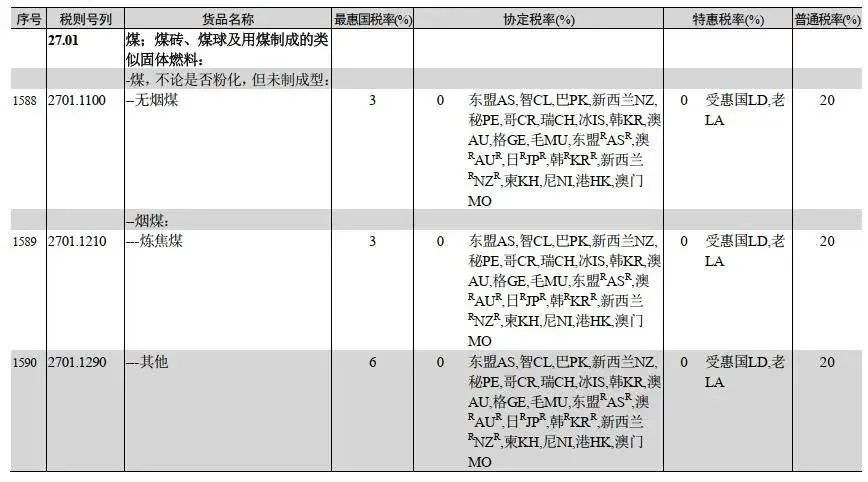 按照自貿(mào)協(xié)定,來(lái)自澳大利亞、印尼的進(jìn)口煤適用的是協(xié)定稅率,均為0;來(lái)自包括俄羅斯、美國(guó)、南非、蒙古等在內(nèi)的其他國(guó)家的進(jìn)口煤實(shí)行最惠國(guó)稅率。
