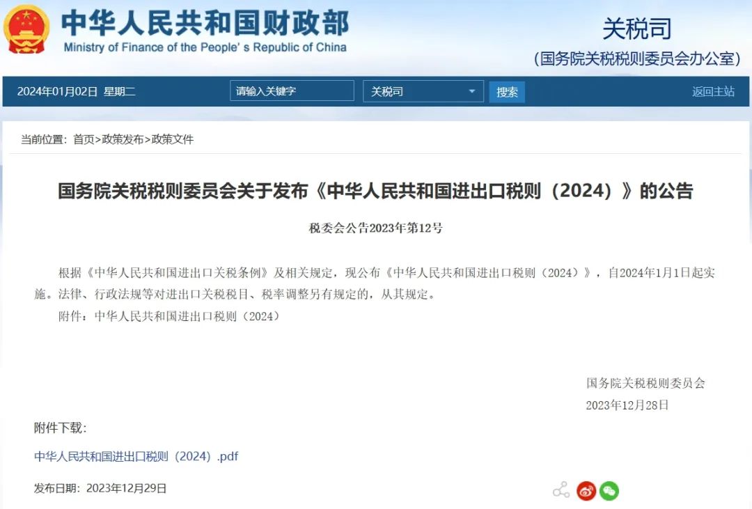 2023年12月29日,國(guó)務(wù)院關(guān)稅稅則委員會(huì)公布《中華人民共和國(guó)進(jìn)出口稅則(2024)》,自2024年1月1日起實(shí)施。相對(duì)于之前發(fā)布的公告,本次公布了進(jìn)出口產(chǎn)品具體的稅則,其中包含煤炭。