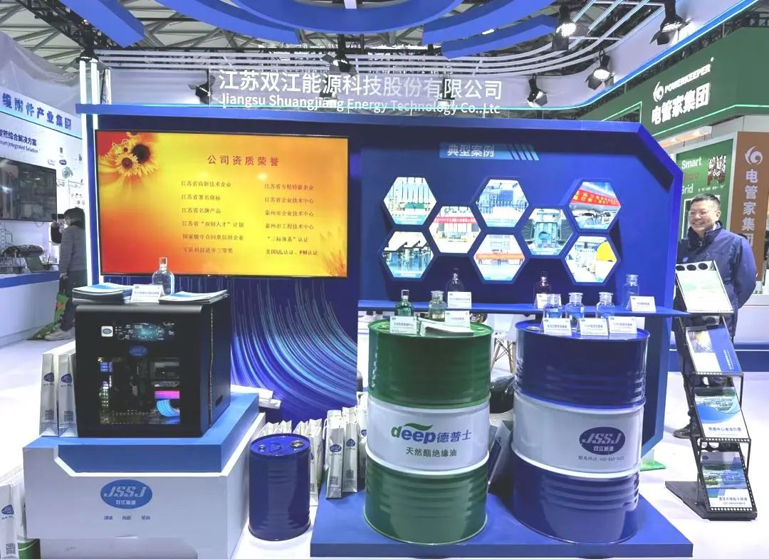 長(zhǎng)纜科技集團(tuán)股份有限公司重點(diǎn)展示了電力系統(tǒng)綜合解決方案、新能源電力綜合解決方案、智能綜合解決方案、電力絕緣材料解決方案、電纜施工解決方案等系統(tǒng)解決方案。長(zhǎng)纜科技控股子公司江蘇雙江能源科技股份有限公司攜天然酯絕緣油、變壓器油、冷卻液等高品質(zhì)特種工業(yè)潤(rùn)滑油亮相展會(huì)。