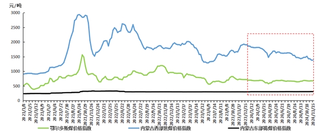 12月2日,內(nèi)蒙古煤炭?jī)r(jià)格指數(shù)最新成果在2024年企業(yè)家博鰲論壇上正式發(fā)布。監(jiān)測(cè)結(jié)果顯示,2024年,在國內(nèi)煤炭供需結(jié)構(gòu)寬松背景下,內(nèi)蒙古動(dòng)力煤年內(nèi)運(yùn)行相對(duì)穩(wěn)定,但較上年均價(jià)有所下跌,西部焦煤價(jià)格在下游需求走弱背景下震蕩回落。