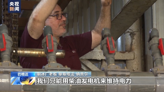 制冰廠(chǎng)老板 穆斯塔法·納賈爾:每供電兩小時(shí)會(huì)斷電兩小時(shí),在溫度升高時(shí),電力供應(yīng)會(huì)更差,停電會(huì)持續(xù)四小時(shí),我們只能用柴油發(fā)電機(jī)來(lái)維持電力。