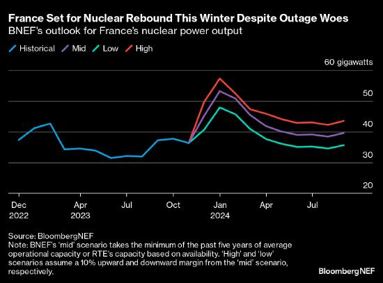 鑒于這些最新進(jìn)展,彭博新能源財(cái)經(jīng)將其對(duì)法國(guó)12月可用核電裝機(jī)容量的預(yù)測(cè)下調(diào)至45GW,較之前的預(yù)測(cè)低7%。不過,彭博新能源財(cái)經(jīng)仍然預(yù)測(cè),法國(guó)在即將到來冬季的可用核電裝機(jī)容量平均為50GW,比去年同期增長(zhǎng)23%。