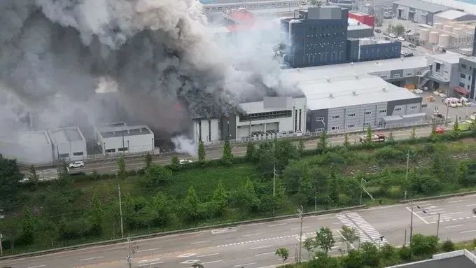 6月24日上午,韓國(guó)京畿道華城市一電池廠發(fā)生火災(zāi)。