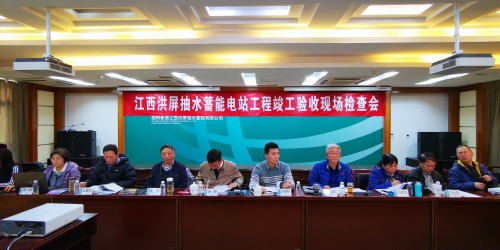 驗收委員會會議于2019年12月6日在南昌召開。會議由王忠耀副院長主持。會議首先由主任委員王忠耀介紹了竣工驗收的依據(jù)、程序和驗收委員會成員,隨后,工程運行管理單位洪屏公司李幼勝董事長致詞,會議先后聽取了洪屏抽水蓄能有限公司關于工程建設、電站運行管理及竣工驗收專項驗收情況的匯報,設計院關于工程設計情況的匯報,以及驗收專家組關于驗收結論意見的介紹。與會各位委員、代表就工程竣工驗收條件和存在的問題進行了研究和討論。驗收委員會同意江西洪屏抽水蓄能電站通過工程竣工驗收。
