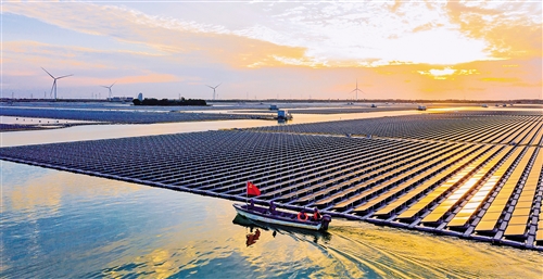 10月19日,國(guó)家電網(wǎng)彩虹服務(wù)隊(duì)隊(duì)員在山東德州丁莊華能光伏電站開展日常維護(hù),排查涉電安全隱患,確保迎峰度冬用電穩(wěn)定。丁莊華能光伏電站是全球單體最大水面漂浮式光伏電站,一期100兆瓦項(xiàng)目近期并網(wǎng)發(fā)電。該項(xiàng)目全部建成后,每年可提供清潔能源4.2億千瓦時(shí)。宋偉龍攝(中經(jīng)視覺(jué))