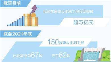 一道道大壩橫亙江河,一條條管道攀越山嶺,一座座水庫(kù)攬山擁水……一批基礎(chǔ)性、樞紐性、戰(zhàn)略性重大水利工程拔地而起,國(guó)家水網(wǎng)建設(shè)加快推進(jìn)。水利部數(shù)據(jù)顯示,150項(xiàng)重大水利工程建設(shè)在加快實(shí)施,截至2021年底,已批復(fù)立項(xiàng)67項(xiàng),開(kāi)工62項(xiàng)。截至目前,我國(guó)在建重大水利工程投資規(guī)模超萬(wàn)億元。