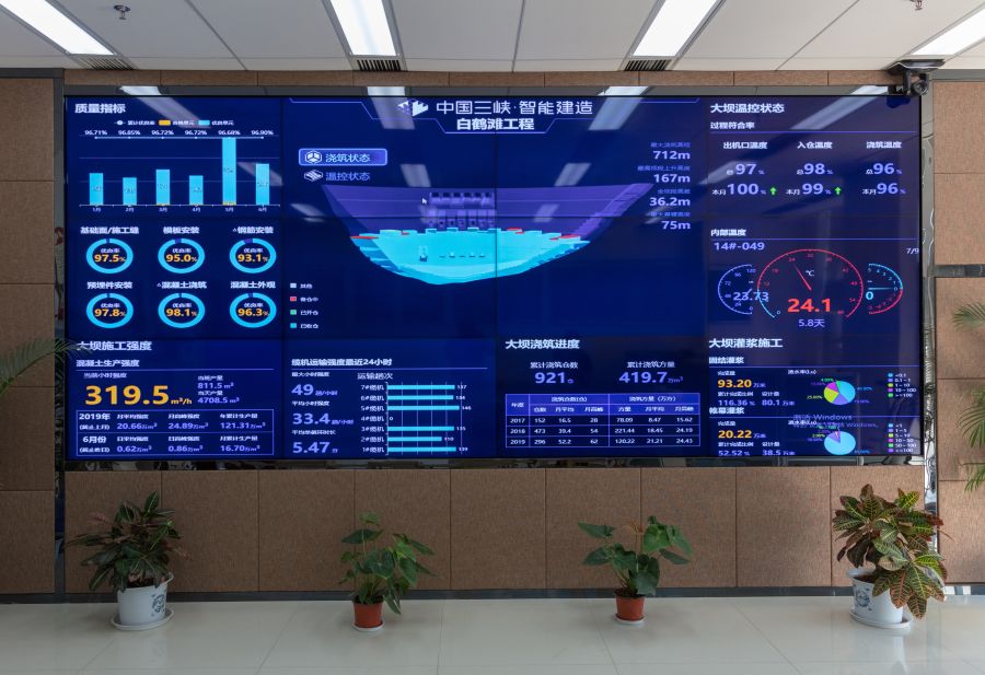 三峽集團(tuán)白鶴灘工程建設(shè)部技術(shù)管理人員表示,即使他們遠(yuǎn)在數(shù)千公里外的北京出差,只要接入平臺端口,隨時可以看見大壩的“頭疼腦熱”。隨著人工智能技術(shù)的運(yùn)用,給混凝土大壩降溫和埋設(shè)水管通水冷卻這些措施,通過清華大學(xué)和三峽集團(tuán)聯(lián)合研發(fā)的智能通水2.0系統(tǒng),可以實(shí)時在線分析大壩混凝土的溫度和溫差變化,自行運(yùn)算后,動態(tài)自動調(diào)整通水量,讓大壩混凝土保持在“最舒適的換熱過程”。此外,借助“北斗”系統(tǒng),對工地現(xiàn)場的車輛和大型機(jī)械實(shí)現(xiàn)精確定位管理。
