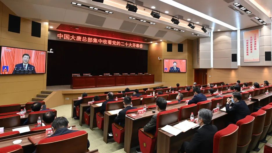 中國大唐黨員干部群眾早早端坐在屏幕前,懷著激動的心情,收聽收看黨的二十大開幕會,認真聆聽習(xí)近平總書記所作的報告。集團公司領(lǐng)導(dǎo)劉明勝、時家林、王瑛、曲波、張傳江、彭勇、陶云鵬和總部副經(jīng)理級及以上干部分別在總部3個會場,系統(tǒng)31991名黨員干部職工在全國1873個會場集中收看開幕會盛況。
