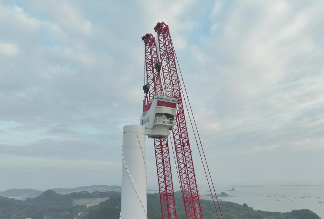 廣東首個風(fēng)電臨海試驗基地試驗風(fēng)機(jī)吊裝。