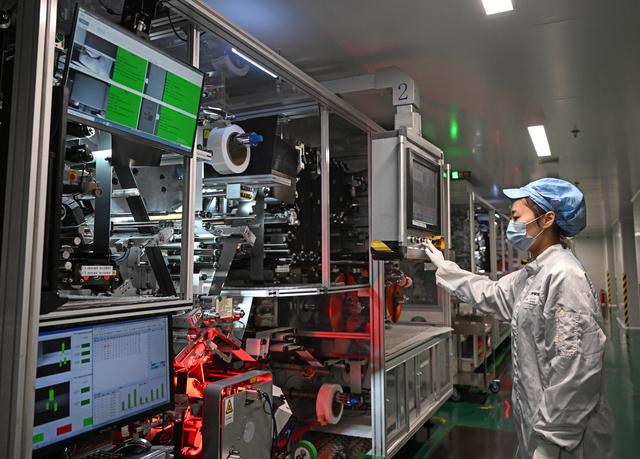 天津力神電池股份有限公司員工在動(dòng)力電池生產(chǎn)車間工作(2023年2月8日攝)?!⌒氯A社記者 趙子碩 攝