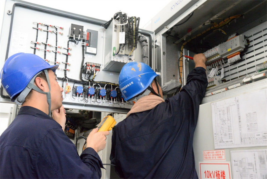 國(guó)網(wǎng)保定供電公司員工在110千伏塔上變電站開展10千伏開關(guān)柜控制電纜絕緣試驗(yàn)。