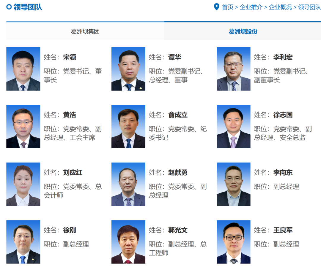 截至3月6日,中國(guó)葛洲壩集團(tuán)官網(wǎng)領(lǐng)導(dǎo)團(tuán)隊(duì)專欄顯示,葛洲壩集團(tuán)領(lǐng)導(dǎo)如下: