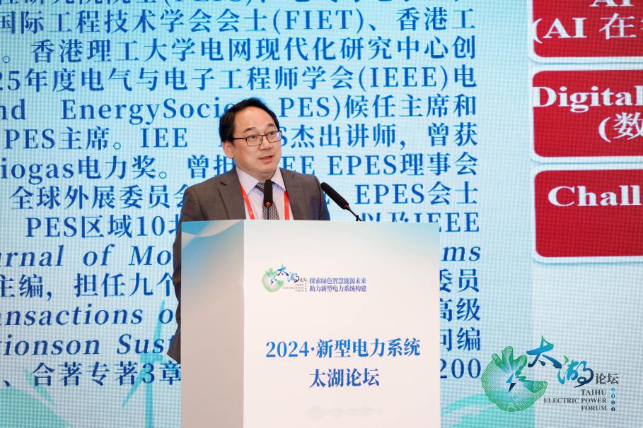 加拿大工程院院士、香港理工大學(xué)鐘志勇教授作了題為《智能電網(wǎng)技術(shù)革新:人工智能和數(shù)字孿生的新機(jī)遇與挑戰(zhàn)》的主旨報告