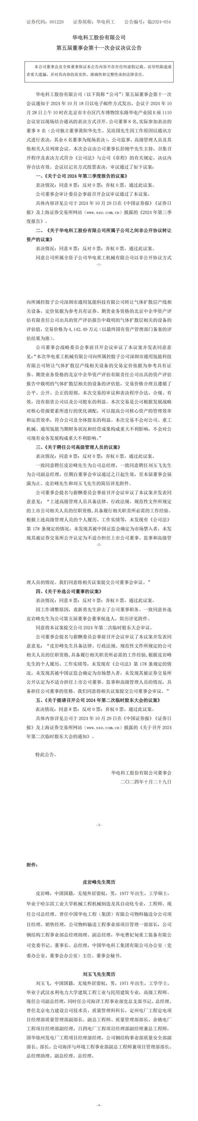 10月29日,華電科工發(fā)布公告,公司召開第五屆董事會第十一次會議,一致同意聘任皮巖峰先生為公司總經(jīng)理,一致同意聘任劉玉飛先生為公司副總經(jīng)理,任期自董事會審議通過之日起生效,至本屆董事會屆滿為止。因工作調(diào)整原因,袁新勇先生辭去公司董事職務(wù)。一致同意補選皮巖峰先生為公司第五屆董事會董事候選人。