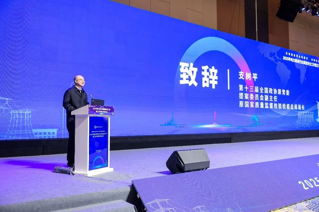第十三屆全國政協(xié)原常委、提案委員會副主任、原國家質(zhì)量監(jiān)督檢驗檢疫總局局長支樹平,中國工程院院士、山東省原副省長、山東省科協(xié)主席凌文,中國南方電網(wǎng)有限責任公司總工程師汪際峰,中國電力建設企業(yè)協(xié)會會長王思強出席會議并致辭。國家能源局電力安全監(jiān)管司司長汪擁軍,中國電力建設企業(yè)協(xié)會總工程師兼副秘書長白林杰發(fā)表主旨演講。國家能源集團原副總經(jīng)理馮樹臣,中國電力建設企業(yè)協(xié)會副會長、北京能源集團副總經(jīng)理張鳳陽,中國電力建設企業(yè)協(xié)會副會長、內(nèi)蒙古能源集團副總經(jīng)理賀彪,中國電力建設企業(yè)協(xié)會駐會副會長尹松,中國電力建設企業(yè)協(xié)會秘書長?;燮迹袊娏ㄔO企業(yè)協(xié)會總經(jīng)濟師王彥文、中國電力建設企業(yè)協(xié)會副總工程師石玉成及來自中國電力建設企業(yè)協(xié)會理事單位、常務理事單位、全國各地的電力建設企業(yè)、科研機構、高等院校等共計4200余名代表參加會議。會議由中國電力建設企業(yè)協(xié)會常務副會長王軍主持。