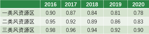 表1: 2016-2020年陸上風電上網(wǎng)標桿電價水平逐年下調(diào)幅度(單位:元/千瓦時)