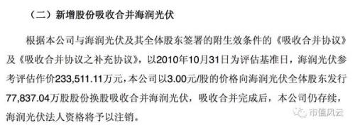 根據報告書,原海潤光伏2008年、2009年和2010年1~10月實現的凈利潤分別為2.11億、0.26億(據說是受金融危機影響)、2.7億,妥妥的優質資產。