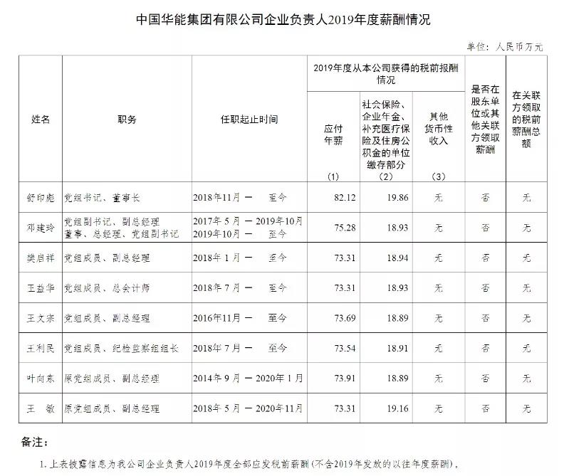 其中,以國家電網(wǎng)總經(jīng)理、黨組副書記辛保安86.86萬元年薪為最高,時任國家電網(wǎng)董事長、黨組書記寇偉年薪同樣是86.86萬元。其次為華能集團黨組書記、董事長舒印彪年薪82.12萬元。