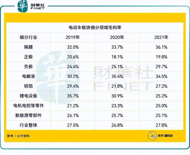 動力電池的成本構(gòu)成是——正極40%,負(fù)極15%,隔膜20%,電解液15%,從成本端來看,隔膜并不是最高的,但是依然選擇恩捷股份(002812.SZ)的原因一是恩捷股份的市占率較高,寡頭效應(yīng)明顯;二是,隔膜行業(yè)的毛利率較高,如下所示。