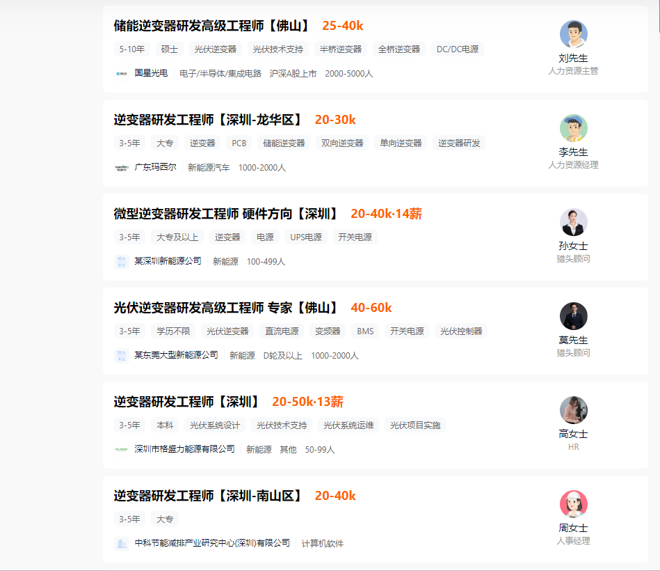 獵聘網(wǎng)招聘需求顯示,3年~5年經驗的逆變器工程師,月薪區(qū)間普遍在2萬~4萬元
