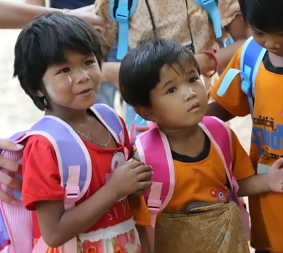 幾個小孩子面對志愿者們陌生的面孔,表現(xiàn)得非常興奮,做出喜悅和歡迎的手勢迎接志愿者。當為他們背上書包、送上糖果時,孩子們在房間里歡呼雀躍。孩子們天真爛漫、滿足幸福的神情也深深感染了志愿者。