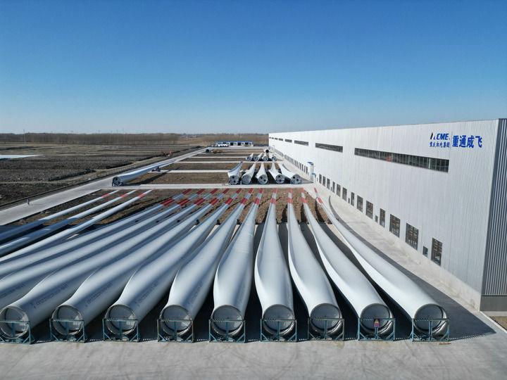 一批批風(fēng)機裝備制造產(chǎn)業(yè)落戶東北。在中國一重龍申(齊齊哈爾)復(fù)合材料有限公司葉片制造園區(qū),工人們正在生產(chǎn)風(fēng)電葉片。“從2021年4月啟動建設(shè)園區(qū),到2022年5月第一支76米葉片下線,到正在生產(chǎn)中的98米葉片模具,旺盛需求推著我們加緊研發(fā)、突破瓶頸、全速前進。”公司總經(jīng)理徐戈說。