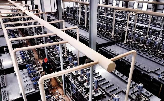 2023年5月,陜西渭南市,在一家新能源企業(yè)的濕法萃取車(chē)間,工人巡檢鎳鈷錳鋰萃取工段。該企業(yè)實(shí)現(xiàn)廢舊動(dòng)力電池的梯次利用和再生利用。圖/視覺(jué)中國(guó)