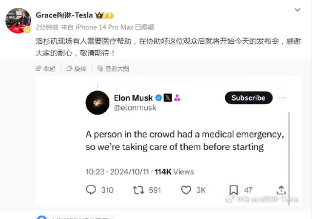 北京時(shí)間10月11日消息,原定于北京時(shí)間10點(diǎn)舉行的特斯拉Robotaxi發(fā)布會(huì)已經(jīng)推遲了半個(gè)小時(shí),至今還未開(kāi)始。正當(dāng)大家紛紛猜測(cè)緣由時(shí),馬斯克在社交媒體上公布了原因,稱現(xiàn)場(chǎng)有人突發(fā)疾病暈倒需要照顧,因此發(fā)布會(huì)推遲舉行,但他未確定具體開(kāi)始的時(shí)間。