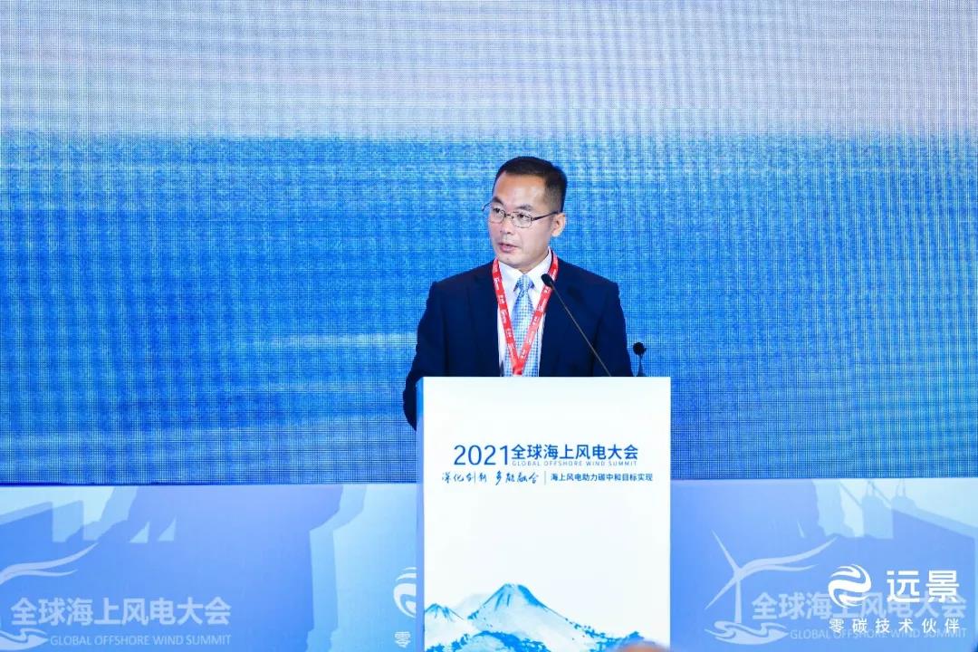 遠景能源高級副總裁田慶軍在大會開幕式上發(fā)表演講。田慶軍認為,中國海上風電潛力巨大,3-5年內中國所有海域基本都可以實現(xiàn)平價,是沿海經濟發(fā)達地區(qū)實現(xiàn)碳中和的必然選擇。