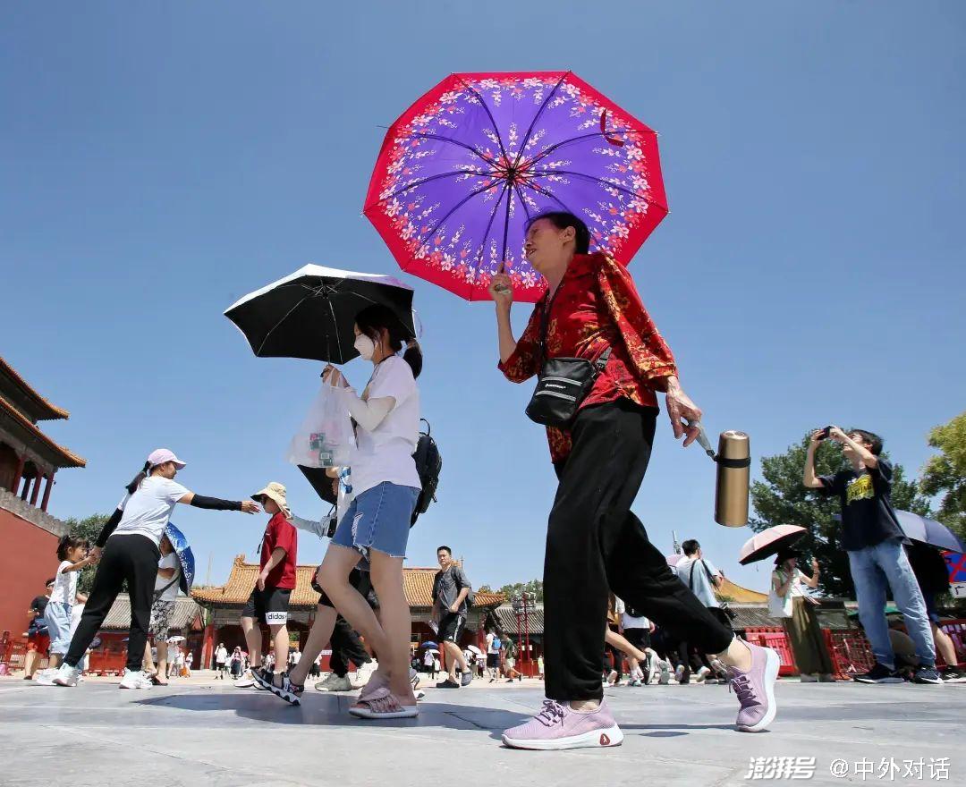 2023年7月4日,游客頂著烈日參觀故宮。圖片來源:Alamy