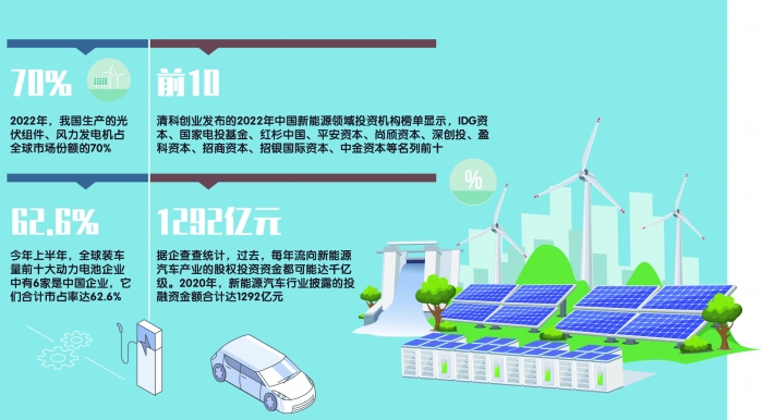 以上并非謬贊。據(jù)國家能源局及咨詢機(jī)構(gòu)SNE Research統(tǒng)計(jì)數(shù)據(jù)來看,我國生產(chǎn)的光伏組件、風(fēng)力發(fā)電機(jī)占全球市場(chǎng)份額的70%,新能源汽車動(dòng)力電池裝車量占世界的60%。在新能源領(lǐng)域,我國擔(dān)當(dāng)?shù)闷?ldquo;領(lǐng)先”之稱。