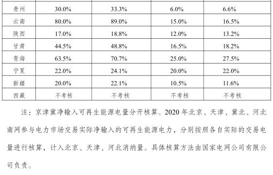 各省級(jí)行政區(qū)域2020年可再生能源電力