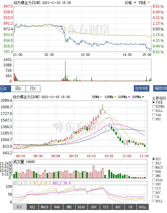 煤炭系期貨集體重挫,截止收盤,動力煤跌7.20%,報(bào)809.6元,創(chuàng)8月底以來新低。