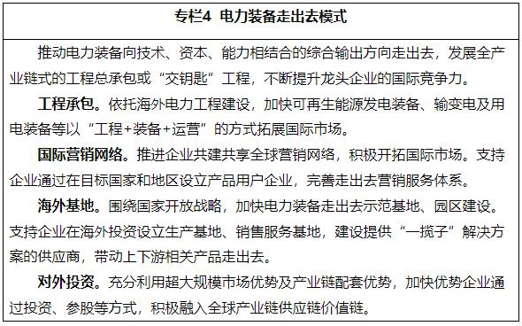 16.推動電力裝備走出去。緊緊圍繞高質(zhì)量共建“一帶一路”、深入實施《區(qū)域全面經(jīng)濟伙伴關(guān)系協(xié)定》,鼓勵優(yōu)勢電力裝備企業(yè)以多種方式加快走出去。引導(dǎo)企業(yè)取得國際認可的服務(wù)資質(zhì),帶動技術(shù)、裝備、標(biāo)準(zhǔn)和服務(wù)走出去。支持行業(yè)組織搭建走出去信息綜合服務(wù)平臺,提供法律、咨詢、風(fēng)險評估等服務(wù)。