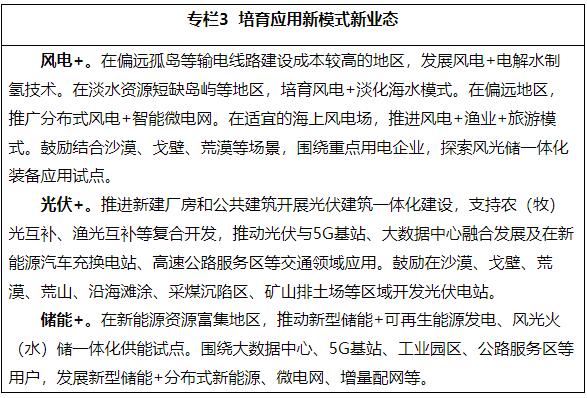 15.培育推廣應(yīng)用新模式新業(yè)態(tài)。推進源網(wǎng)荷儲一體化和多能互補,培育風(fēng)電+、光伏+等多種應(yīng)用新模式新業(yè)態(tài),加快多層級多時間尺度多能互補協(xié)同優(yōu)化。